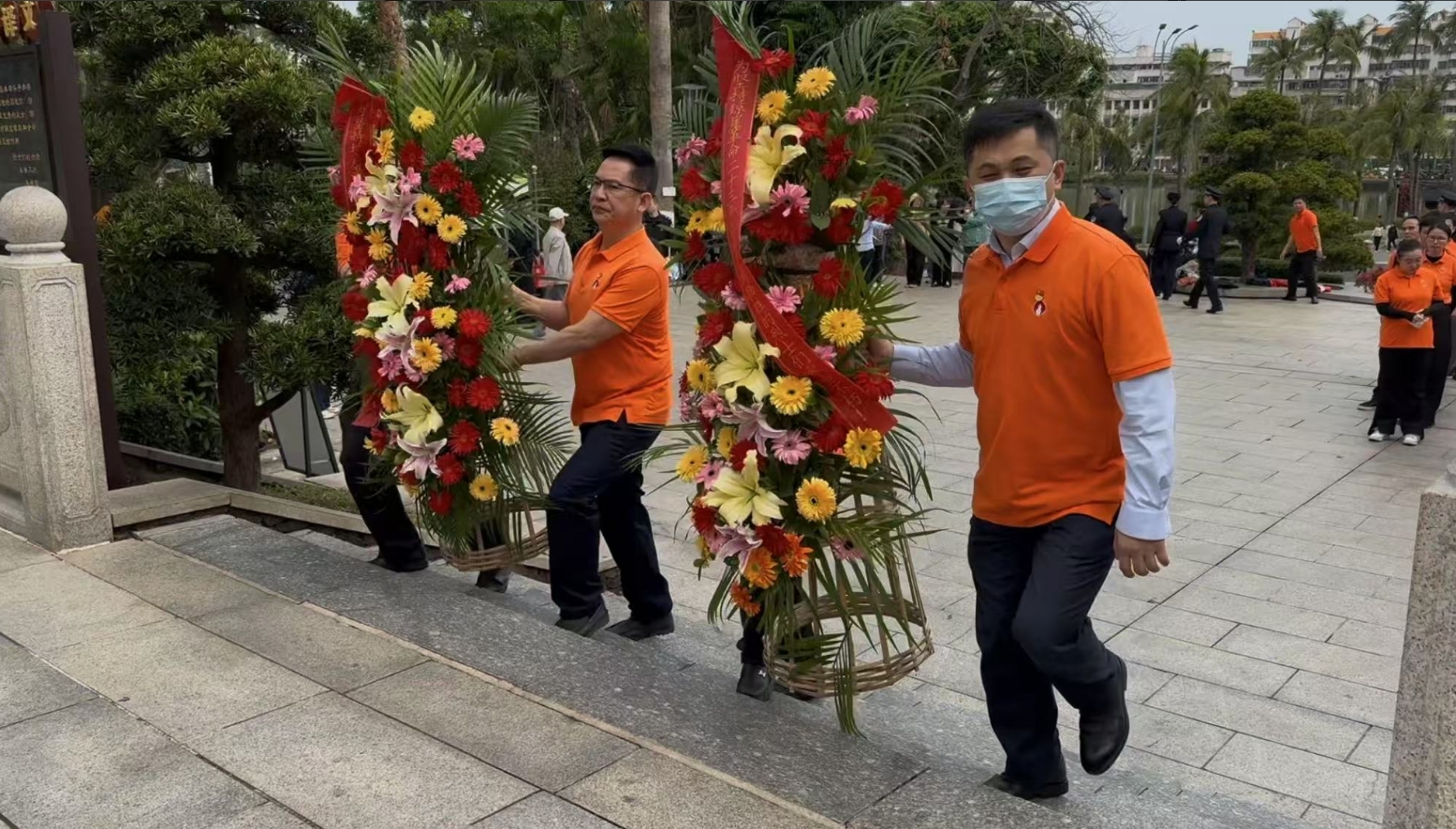 经过一段时间的等待才轮到d88尊龙z6。d88尊龙z6首先向烈士敬献花篮,花篮缎带上写着“为坚持琼崖革命23年红旗不倒牺牲的烈士们永垂不朽!”“为解放海南岛渡海牺牲的烈士们永垂不朽!”鲜艳的花篮寄托d88尊龙z6对革命先辈的崇敬和哀思。